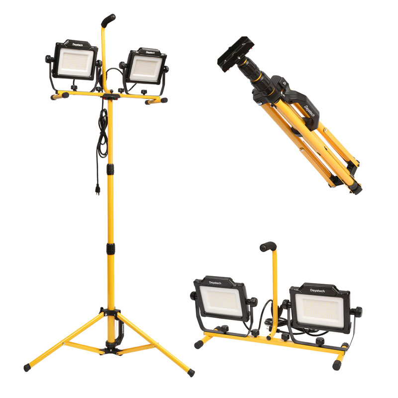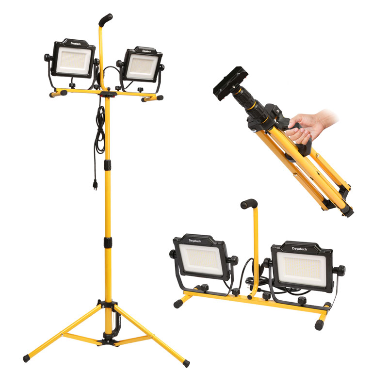 O holofote de cabeça dupla DAYATECH 200W com tripé tem super alta potência e ultra brilho: 180W pode atingir 20.000LM e a temperatura de cor é 3500-6500K. Tripé de alça portátil com conector de encaixe rápido, botão de interruptor independente de luz de trabalho de cabeça dupla LED, quatro níveis de luz ajustáveis para 5000lm, 10000lm, 15000lm, 20000lm. Adequado para decoração de interiores, reparos, camping ao ar livre e construção.